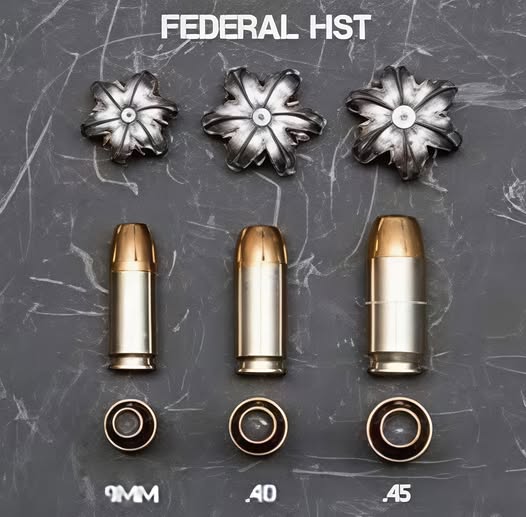 השוואה של תחמושת הגנה עצמית של Federal HST בשלושה קליברים פופולריים לאקדח: 9 מ”מ, 0.40 S&W ו-0.45 ACP. השורה העליונה מציגה את הכדורים לאחר התפשטות לצורה אופיינית של “כוכב ים” או “עלי כותרת”, בעוד שהשורה האמצעית מציגה את המחסניות השלמות, והשורה התחתונה מציינת את שמות הקליברים. מידע מרכזי Federal HST: זהו קו פרימיום של תחמושת […]