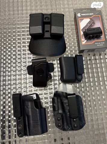 שמור כחדש, 5 מחסניות, נרתיק פרונטליין, נרתיק בעבודת יד, 3 פונדות, מתאם לפנס, כוונות זוהרות בלילה/כוונת קדמית אדומה באור יום)