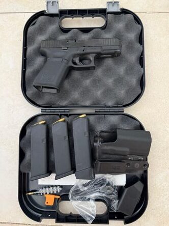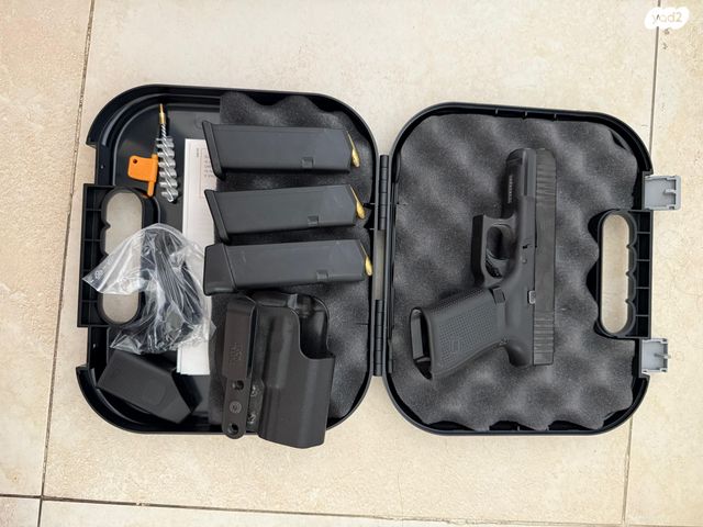 גלוק 19, 2 מחסניות של 15 , ועוד אחת שמכילה 17 כדורים , עם הקייס המקורי , ונרתיק נשיאה . נקנה לפני קצת יותר משנה , ונעשה בו שימוש רק במטווחים של יום הקנייה .