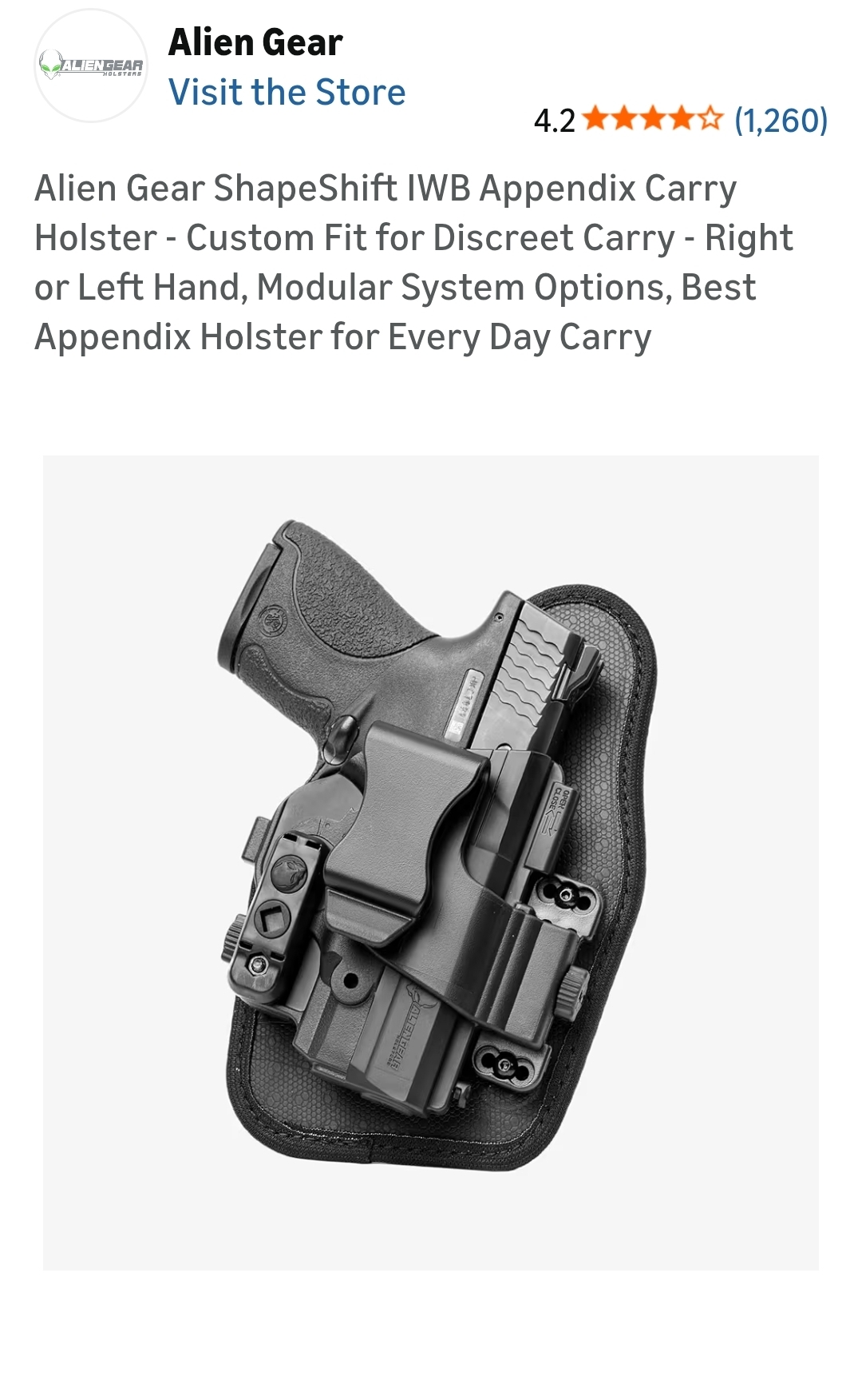 נרתיק ה-Alien Gear ShapeShift IWB Appendix הוא נרתיק נשיאה נסתרת פופולרי ומודולרי, המיוצר בגרסאות לימניים ושמאליים כאחד.
