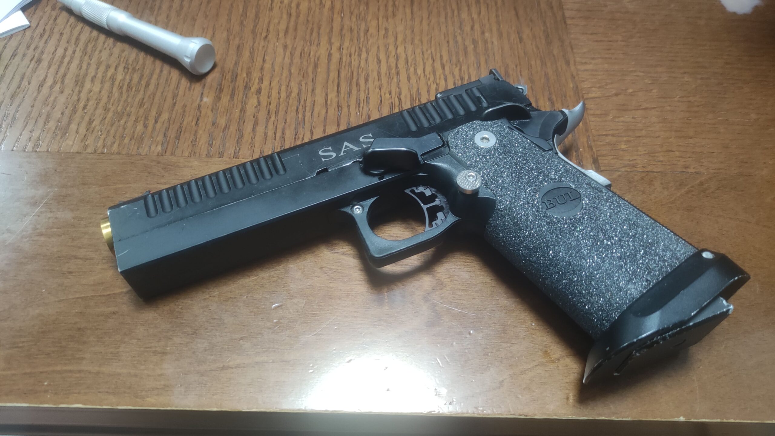 זהו אביזר נשק נפוץ , מכונה באנגלית ” integrated slide stop / thumb rest ” או בכינוי הנפוץ שלו בעולם הירי המעשי , “Gas Pedal ” ( פדל גז ) .